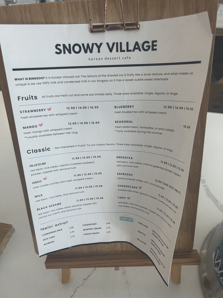 Snowy Village is a dessert haven located in Seattle, offering delightful treats like bingsoo in a cozy ambiance. The bingsoo, made with 100% milk, is a creamy and dreamy concoction that melts in your mouth, with flavors like Cheesecake and Red Bean standing out. The generous portions of shaved ice are light and airy, complemented by various toppings like fresh fruit and soft-serve ice cream. The vibrant atmosphere and friendly staff make it a perfect spot for a sweet treat with friends or a solo indulgence. Prices can be on the higher side, but the quality and taste justify the cost. With unique flavor options, great service, and a cozy seating area, Snowy Village in Capitol Hill is a must-visit for a fluffy, flavorful escape.